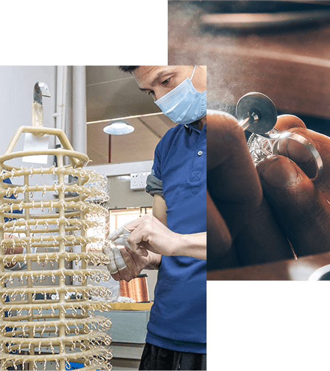 • Our in-house plating factory is a cornerstone of our commitment to jewelry quality and innovation. We specialize in high-quality plating using real gold layers, offering a variety of finishes including K-gold, rose gold, and other premium options to meet diverse design needs. Additionally, our in-house facility provides protection for your design privacy, as the entire electroplating process is conducted within our secure premises, eliminating the risks associated with outsourcing. This not only safeguards your intellectual property but also allows for seamless collaboration and customization, ensuring that every piece meets your exact specifications.