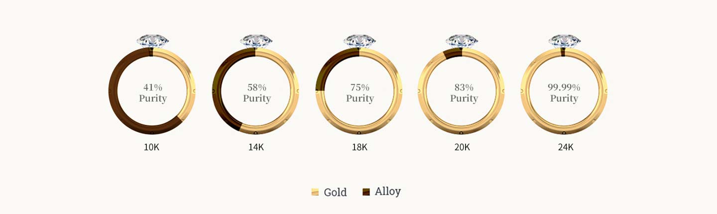 With a gold content of 58%, it is more durable than 18k gold and is very suitable for daily use, but it is less pure and it is a popular choice for wedding rings and everyday jewelry.